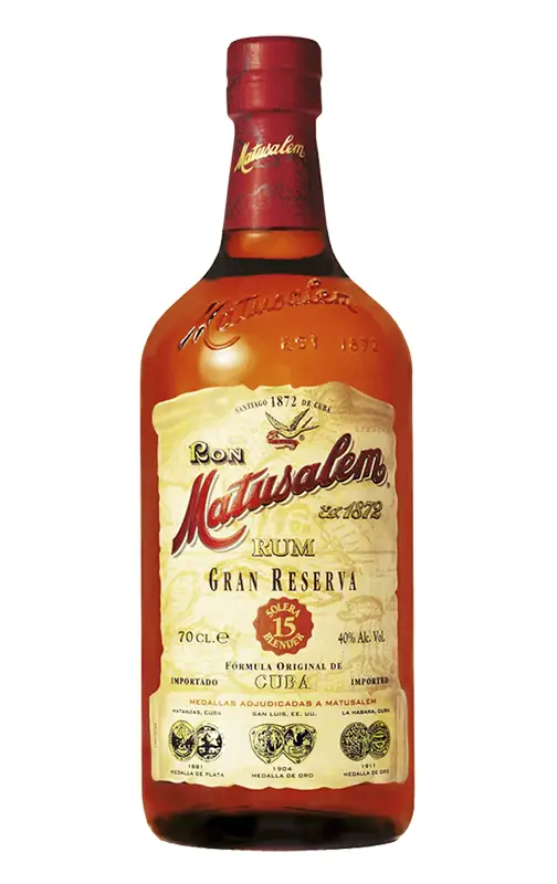 Ron Matusalem Gran Reserva 15 Años es un ron Gran Reserva de República Dominicana, elaborado con mezclas de rones finos procedentes de plantaciones dominicanas. Su proceso de crianza mediante el sistema de solera de 15 años le aporta una gran complejidad y equilibrio, destacando su carácter suave y profundo. Su elegancia y sofisticación lo convierten en una opción ideal para degustar en momentos especiales o regalar.